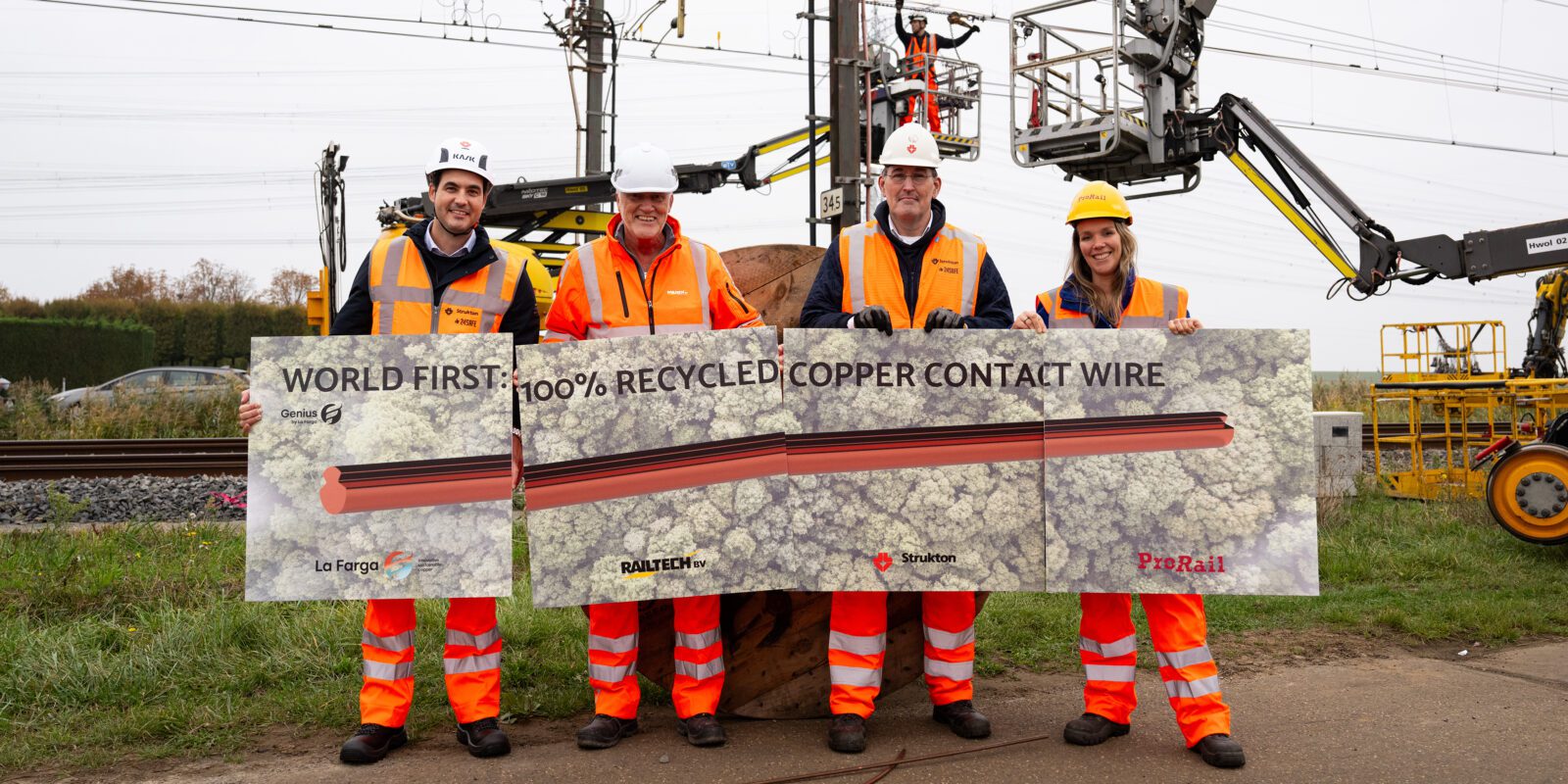 Strukton Rail Nederland heeft ’s werelds eerste rijdraad van 100% gerecycled koper gemonteerd op de Zeeuwse lijn. De spoorsector in Nederland heeft daarmee een duurzame wereldprimeur. Deze primeur is mogelijk dankzij een samenwerking van de Spaanse fabrikant La Farga, leverancier Railtech BV, spooraannemer Strukton en opdrachtgever ProRail. Op zaterdag 11 oktober kwamen La Farga, Railtech BV, ProRail en Strukton samen bij het werk aan de Zeeuwse lijn om bij deze duurzame innovatie stil te staan.